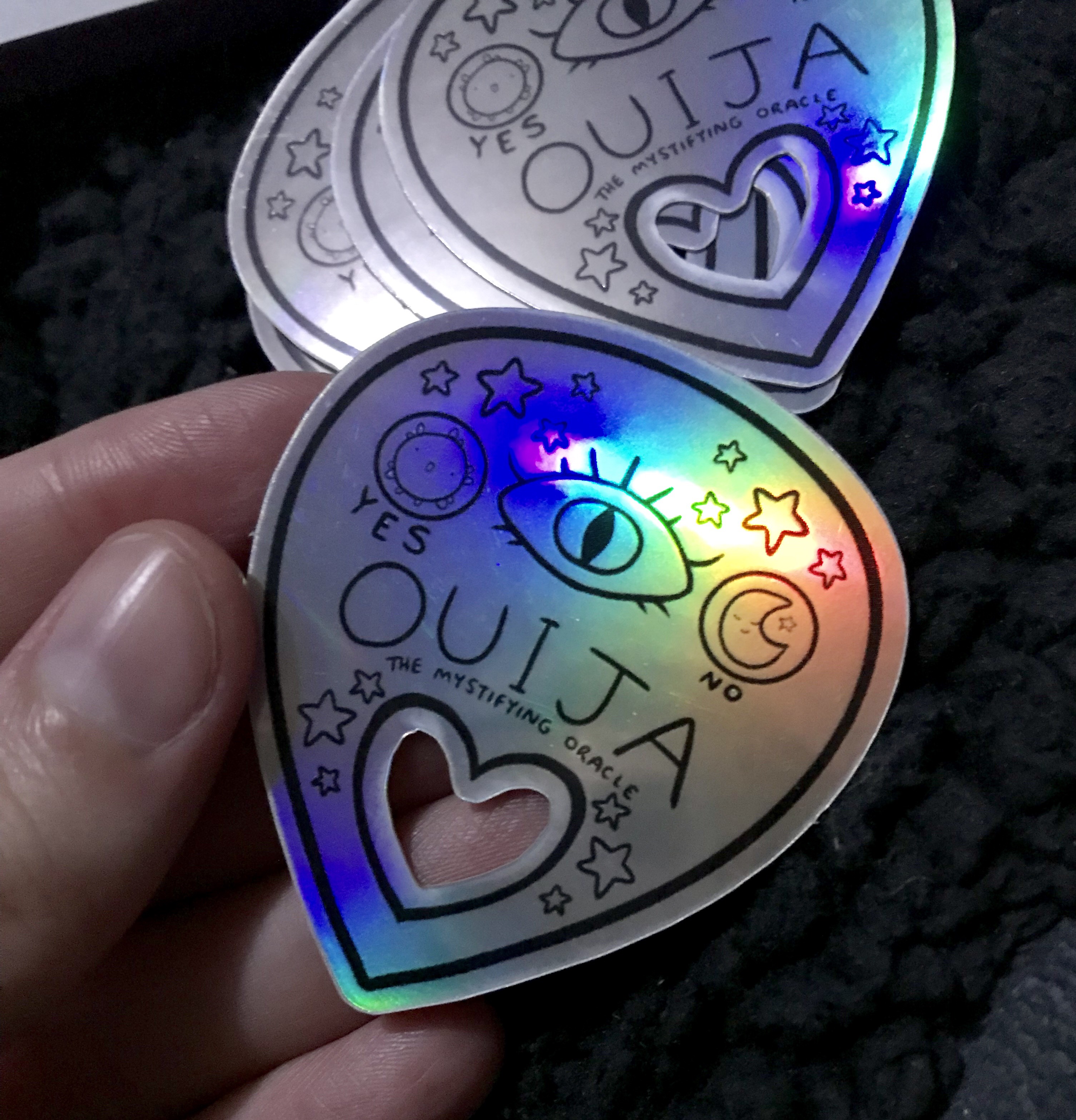 comes in a rainbow white vinyl variant and a shiny holographic variant