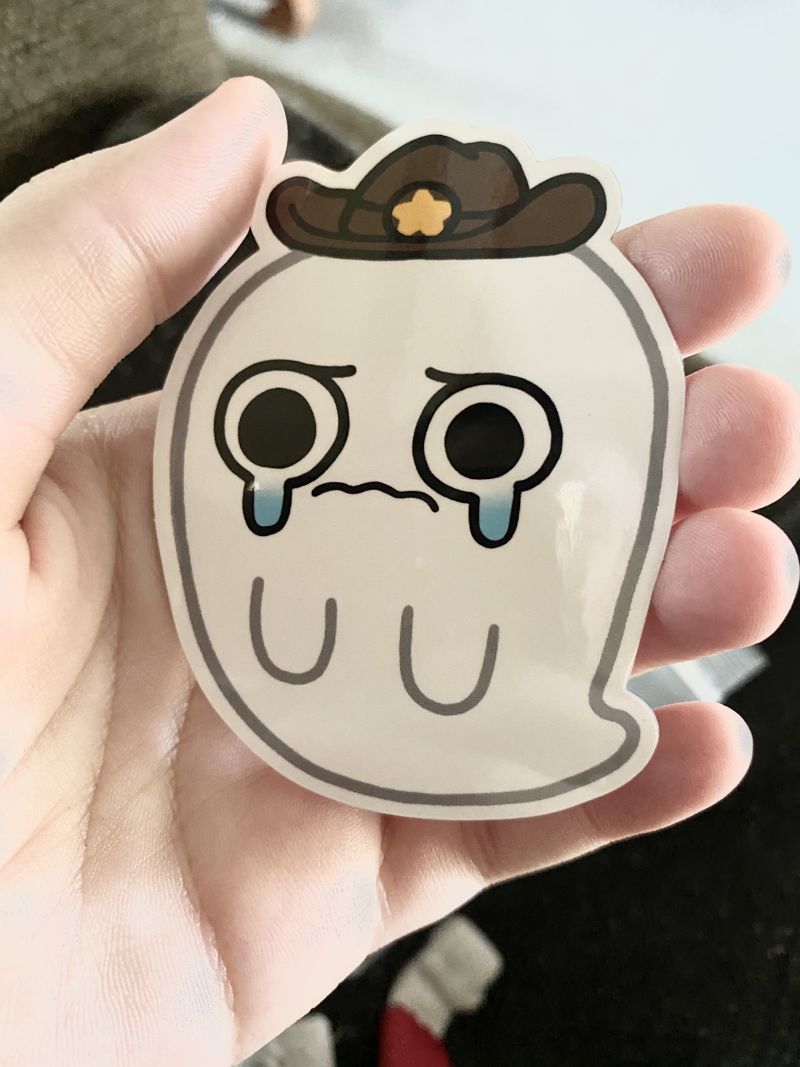 stickers are glossy vinyl and are suitable for waterproof outdoor use. stickers measure 2.5”x2” and the design is original to me.